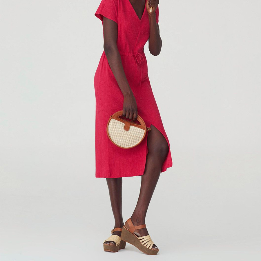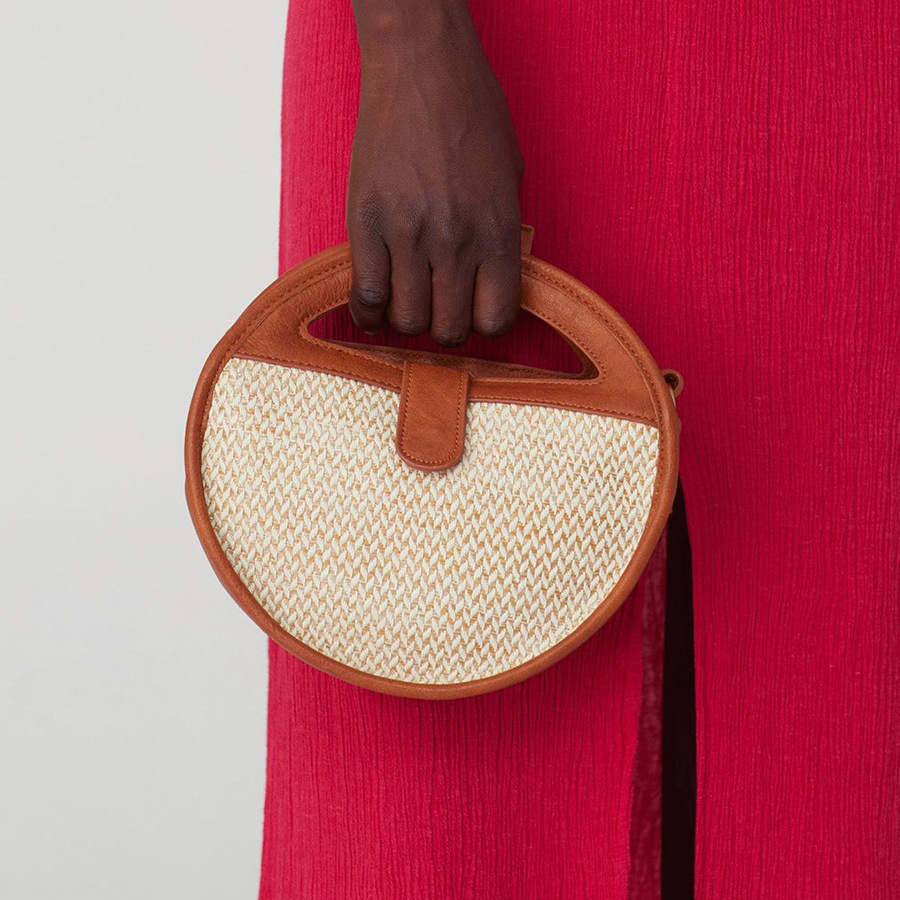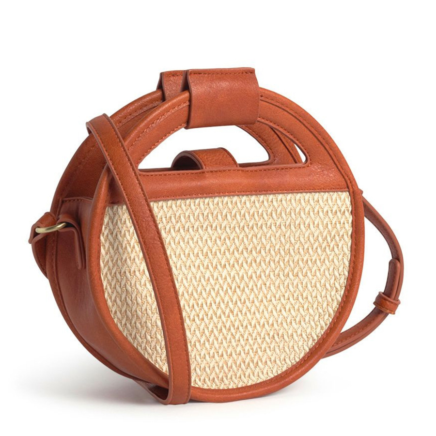 High quality PU and straw, circle design, long adjustable strap