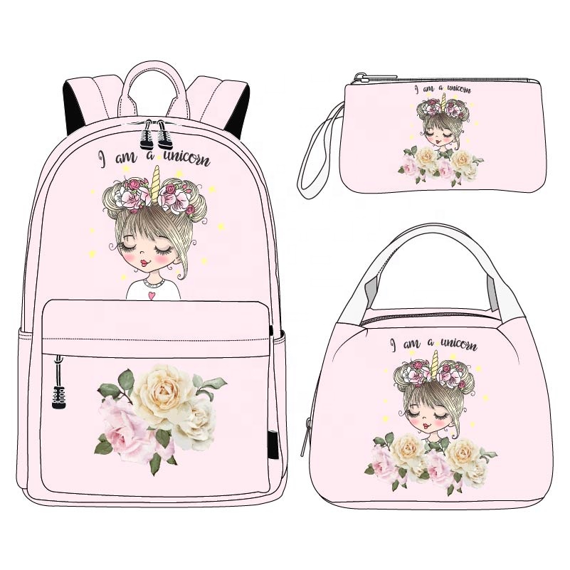 Waterproof, with lunch bag, with pencil, Waterproof, custom, Cartoon. Custom pattern.Flower